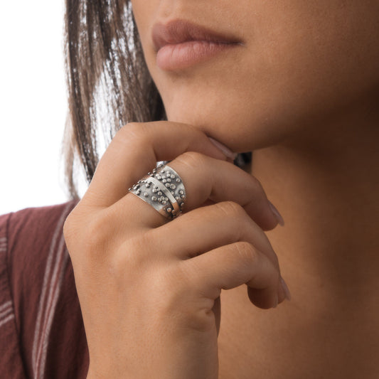 Caph • Bracelet ajustable en argent sterling avec médaillon texturé