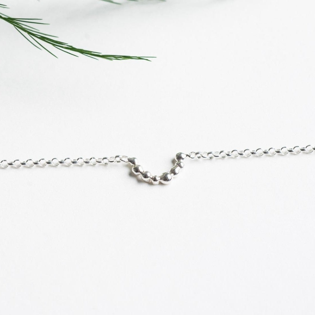 An effortless everyday bracelet with a pave-like set of beads handcrafted in sterling silver. The half-circle bracelet is a close cousin of our Orion piece. Designed with a 3 sizes extension to fit you perfectly. Wear alone or layer with other bracelets.