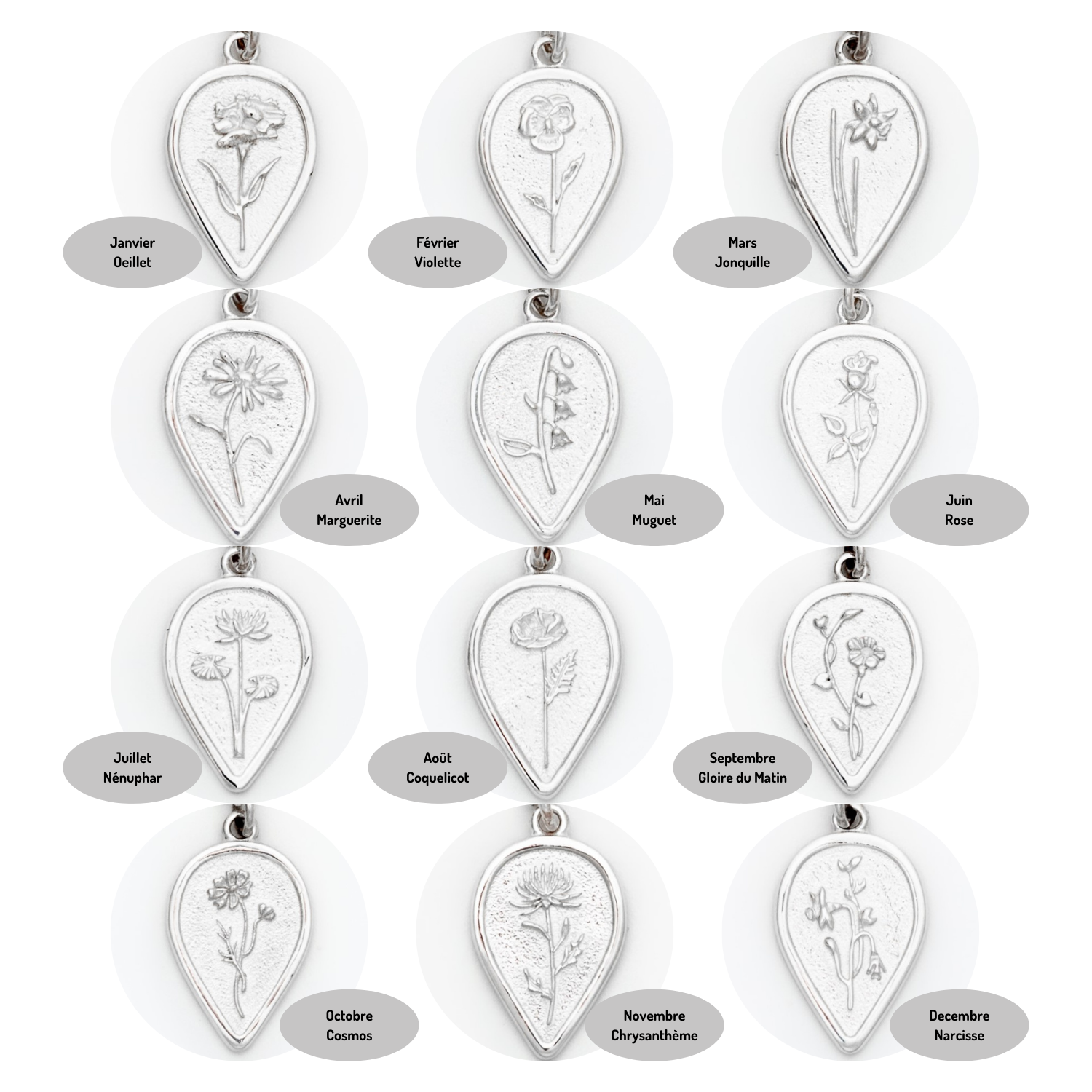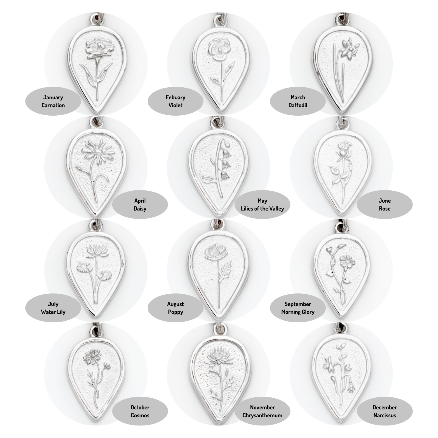 Add a personal touch to your jewelry with our sterling silver birth flower inspired removable dangle earrings. Each month of the year is represented by a unique flower - choose the one that matches your month or preference. These elegant and lightweight earrings feature a hinged clasp for a comfortable and secure fit. The floral dangle can be easily replaced, providing great flexibility to customize your look depending on the occasion or mood.