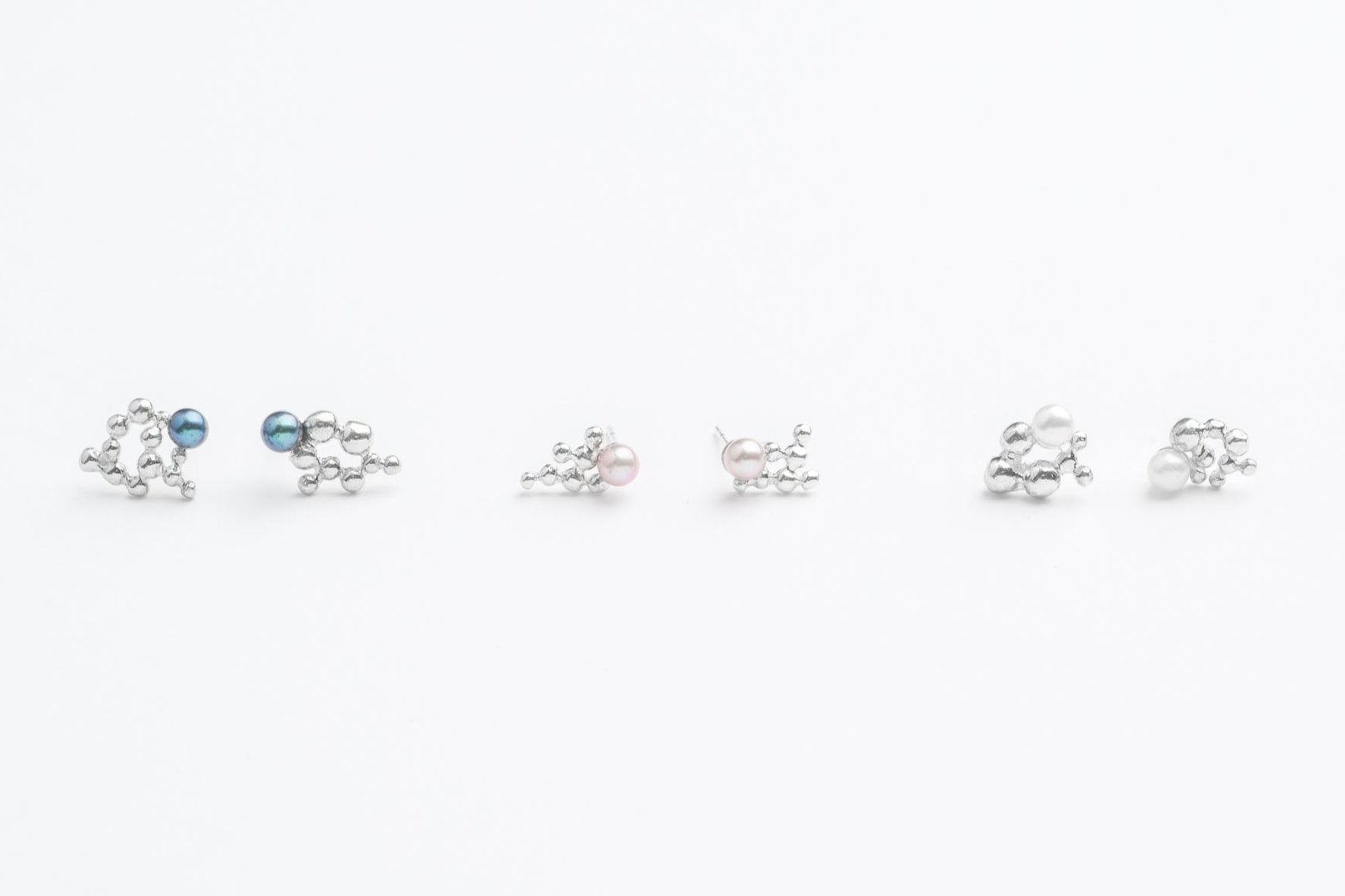 Les boucles Clust Perle revisitent le classique des perles avec une touche contemporaine. Chaque paire est composée de perles naturelles de qualité AA mises en valeur par une structure organique de granules en argent sterling 925.