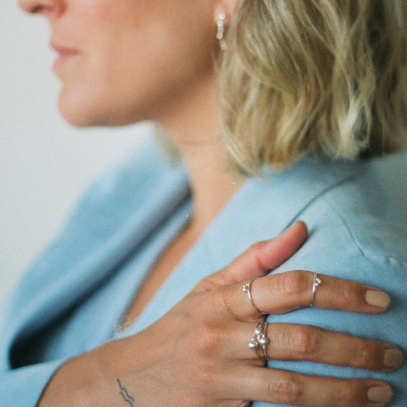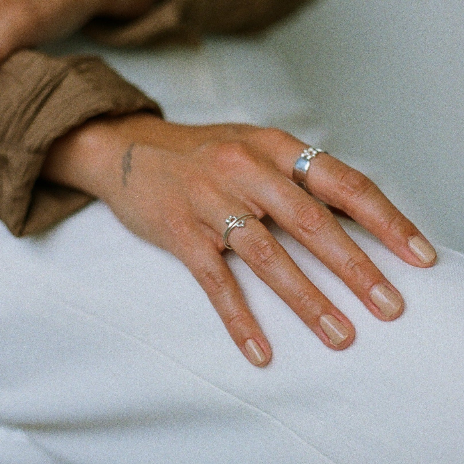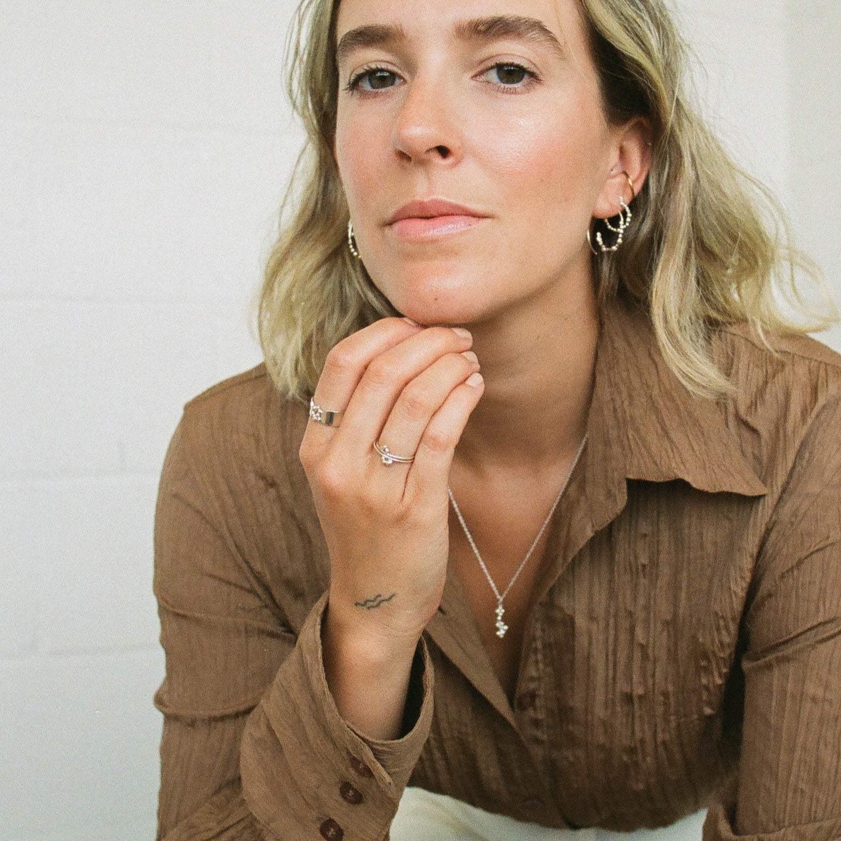Découvrez notre délicate bague fine, parfaite pour l'empilement, fabriquée avec soin en argent sterling. Agrémentée de petites grappes minimalistes de granules, cette pièce ajoutera un touche sublime à votre style tout en restant discrète et élégante.